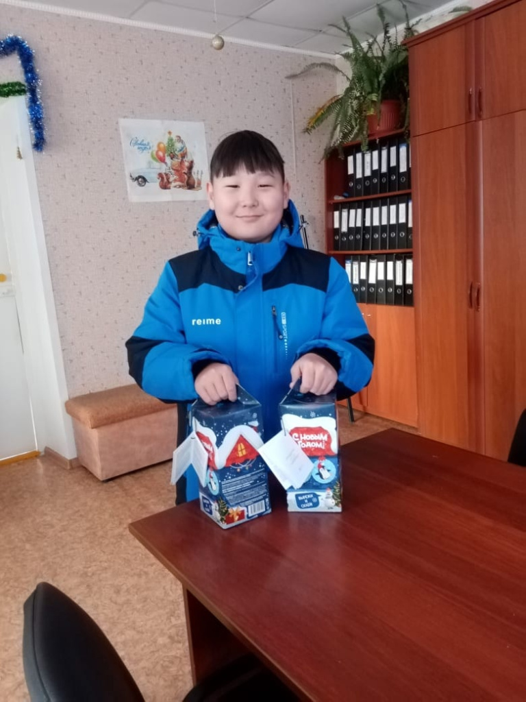 Пятьдесят подарков передал глава КФХ "Ферминвест" Евгений Владимирович Комаров, принес подарки, купленные на свои сбережения, вместе с папой школьник Дамир Суюндуков.
