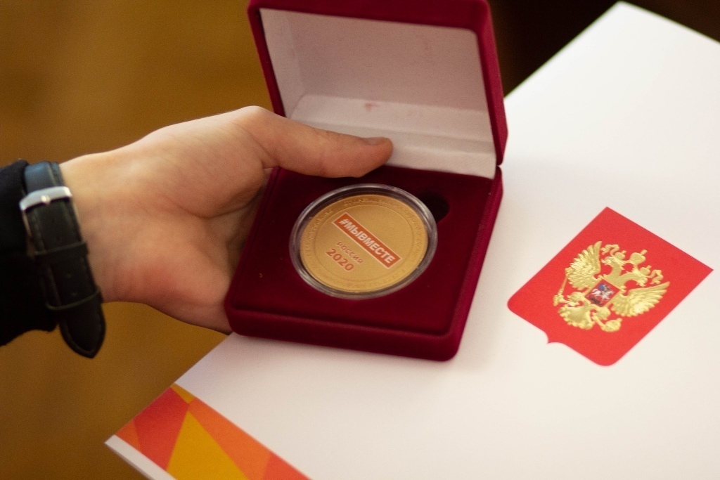 Распоряжением Президента РФ Владимира Путина в июне этого года была учреждена памятная медаль «За бескорыстный вклад в организацию Общероссийской акции взаимопомощи «Мы вместе». Ее вручают неравнодушным гражданам, которые в рамках общероссийской акции безвозмездно приходили на помощь нуждающимся. С начала пандемии они принимали активное участие в мероприятиях по профилактике распространения коронавируса, работали в госпиталях, в региональном волонтерском штабе, доставляли льготные лекарства, проводили термометрию и дезинфекцию рук у входа в медучреждения, а также помогали в подготовке помещений при перепрофилировании медорганизаций в госпитали для пациентов с коронавирусом.