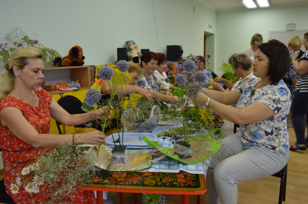 Участниками мастер-класса стали работники учреждений культуры района и члены клуба ветеранов «Светелка» (руководитель В.Д.Жигалова), принимавшие самое активное участие в озеленении детского сада летом прошлого года.