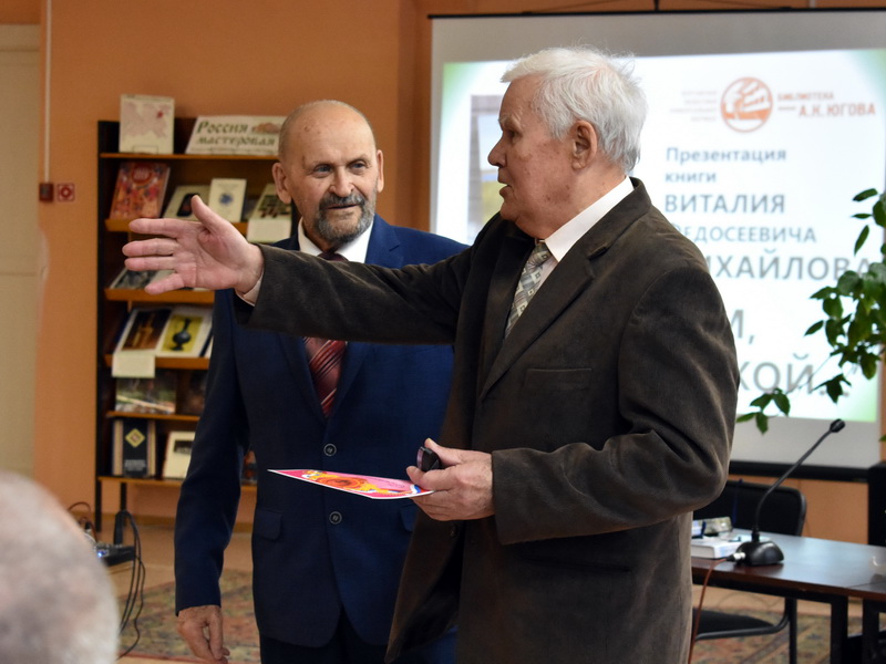 Среди зауральской литературы одно из самых достойных и содержательных произведений на тему малой родины – роман Виталия Михайлова «За Тоболом, за рекой». На мероприятии было представлено переиздание этой книги, дополненное новыми главами. Произведение объединяет ряд повестей в единое большое полотно – роман-эпопею. Читатель окунается в тревожные будни зауральского села и вместе с героями проходит по нелёгкому пути развития этого уголка России. Автор поведал интересные подробности о создании книги и поделился отзывами своих коллег.