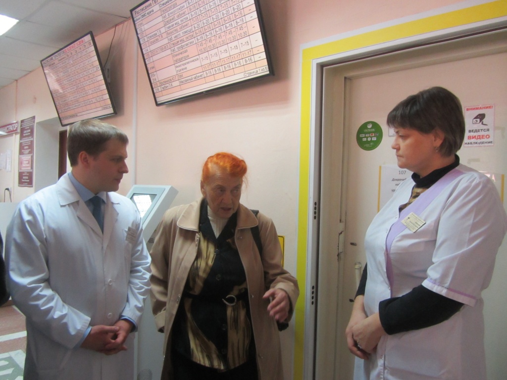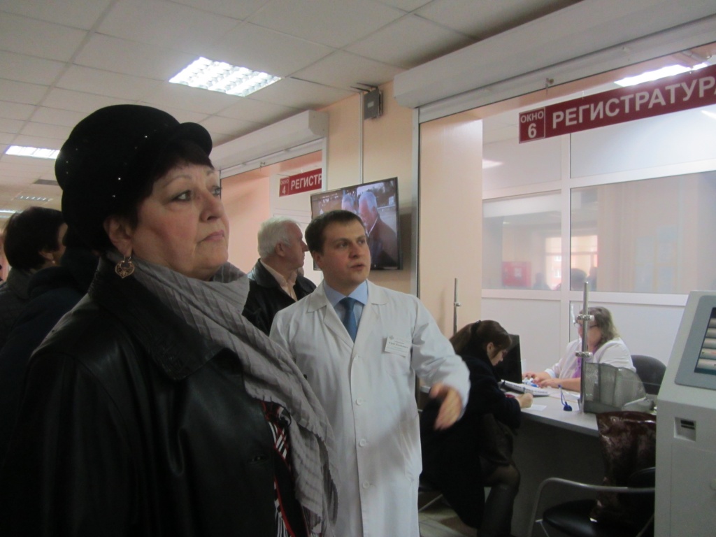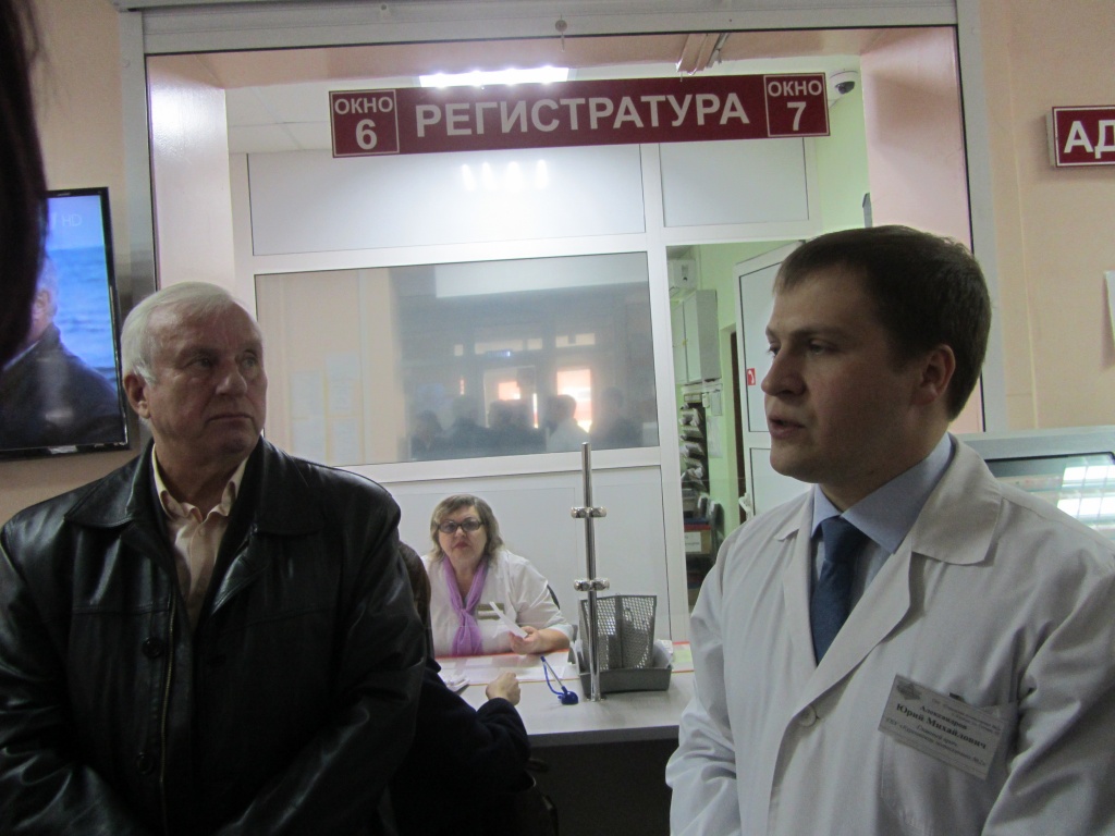 Далее путь лежал в первый микрорайон Заозёрного посёлка, где недавно после длительного строительства открылась поликлиника для взрослых. Главный врач поликлиники Сергей Жуков рассказал о работе «вежливой регистратуры», пояснил, как можно записаться на приемы к врачам-специалистам. Гости посетили отделение медицинской профилактики, подробно расспросили медработников о порядке прохождения диспансеризации, о лечении пациентов в дневном стационаре, о диагностических возможностях поликлиники.