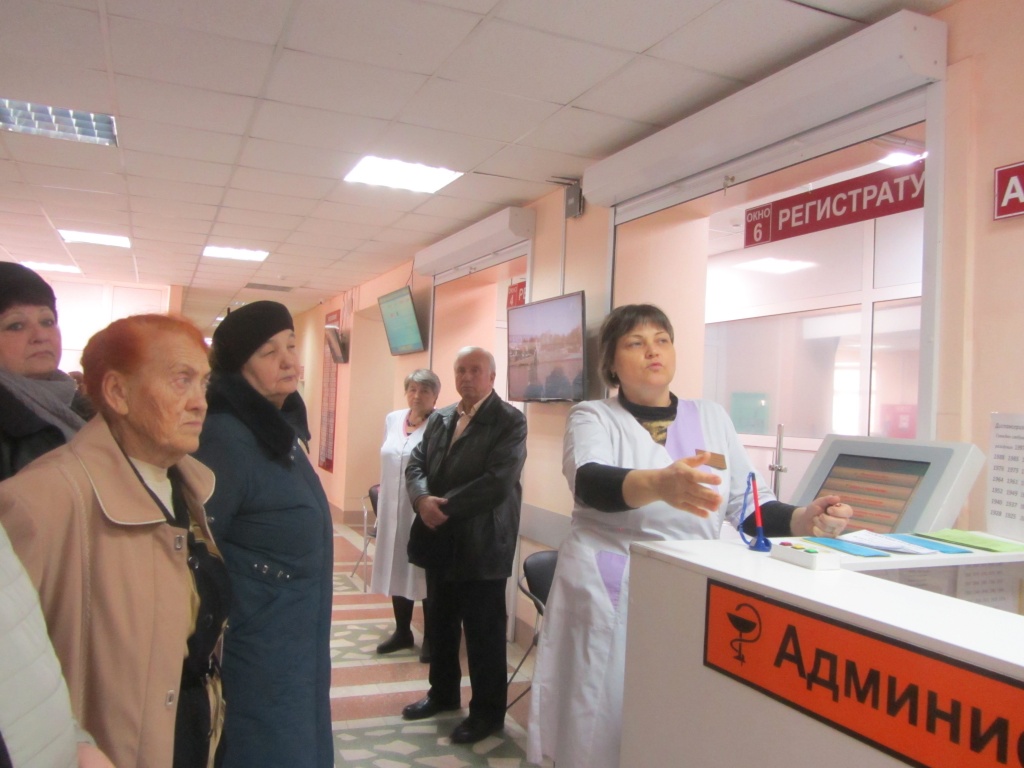 Вторым пунктом поездки стала Курганская поликлиника № 2, что находится в Кургане по улице Карельцева, 54. Целью её посещения стало знакомство с работой регистратуры, с порядком электронной записи на приём. Главный врач поликлиники Юрий Александров и его помощники показали также кабинеты доврачебной помощи, профилактики и диспансеризации, информационные стенды медицинских организаций, ответили на вопросы гостей.