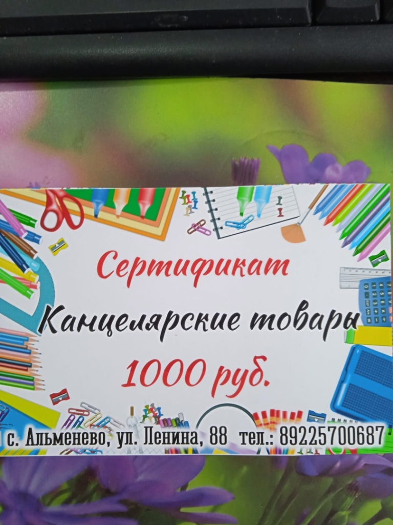 От Альменевского Совета ветеранов праздничные сертификаты на приобретение нужных канцелярских товаров получили люди, которые активно участвуют в жизни округа, занимаются патриотическим воспитанием подрастающего поколения.