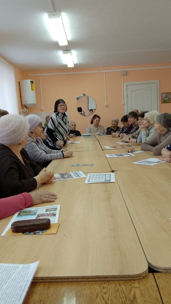 Специалистом Далматовского филиала Государственного бюджетного учреждения «Комплексный центр социального обслуживания населения по Катайскому и Далматовскому районам» Бригида Татьяной Викторовной, которая рассказала о предоставляемых социальных услугах, о формах социального обслуживания, об организации и проведении социально-значимых мероприятий с участием граждан пожилого возраста и инвалидов. Остановилась на сборе гуманитарной помощи мобилизованным землякам.
