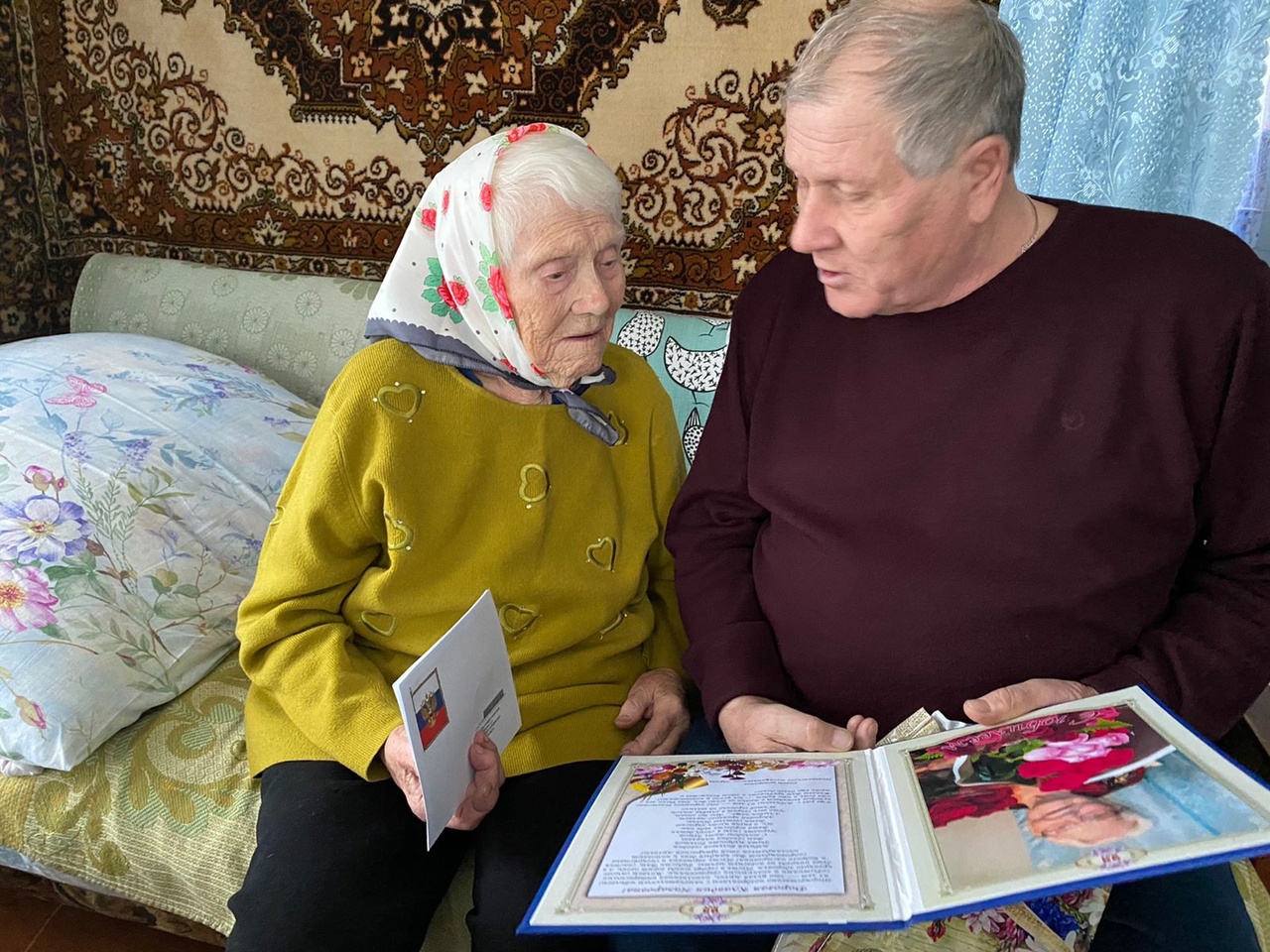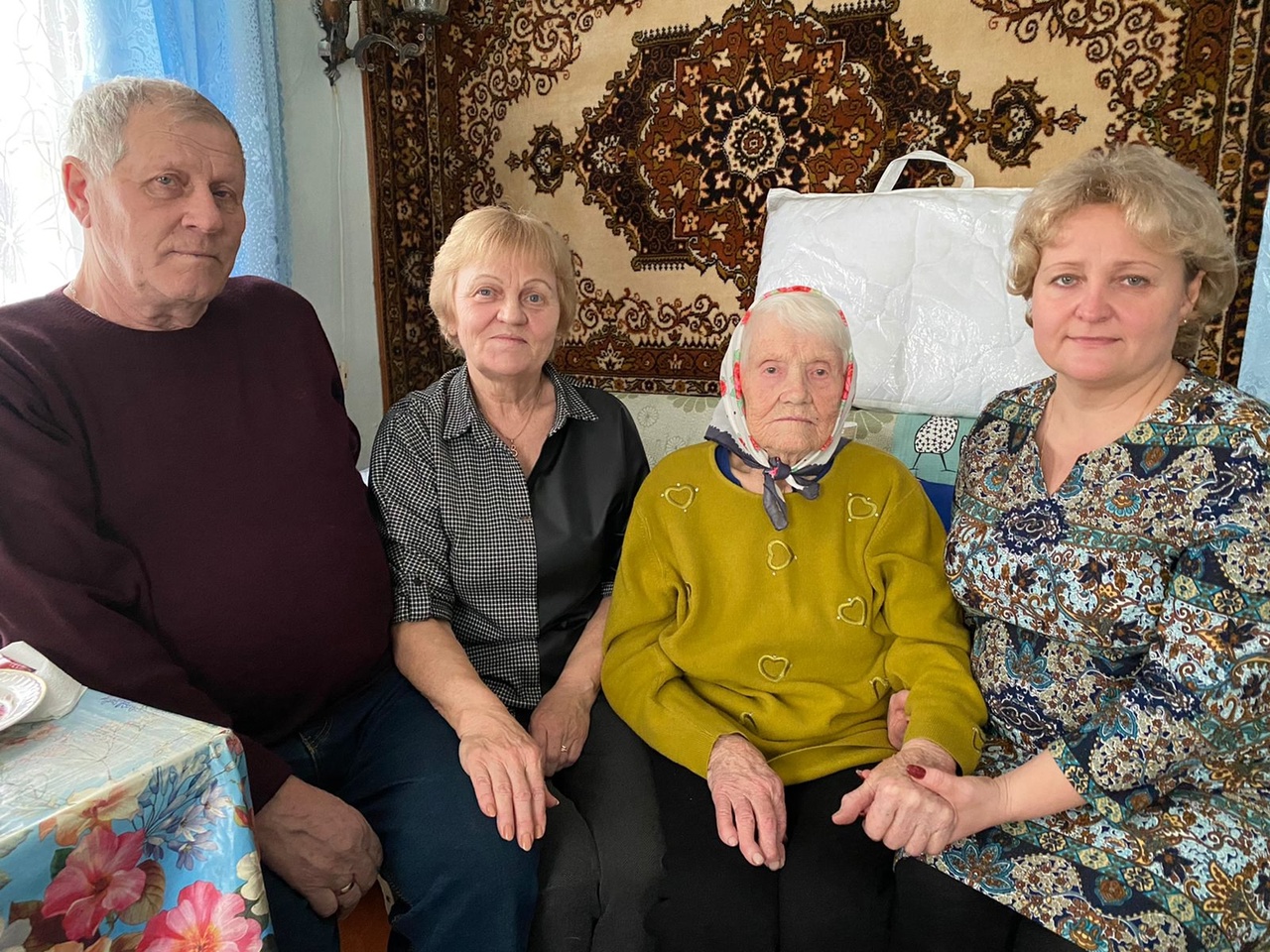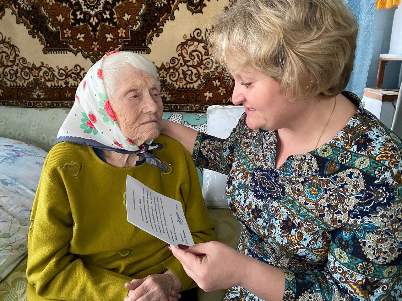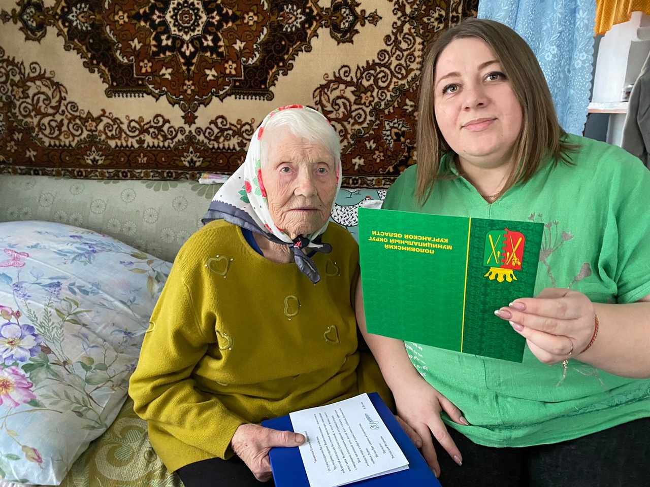 В гости к юбилярше по такому случаю приехали председатель окружного Совета ветеранов Михаил Грязнов, начальник Половинского филиала Центра социального обслуживания Ирина Емельянова, руководитель сектора управления территорией Екатерина Есина, председатель ветеранской организации Сумок и библиотекарь Валентина Алексеева.