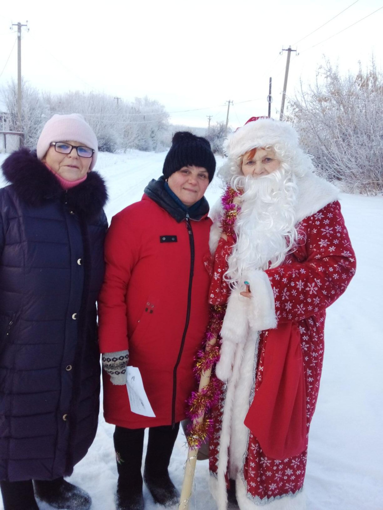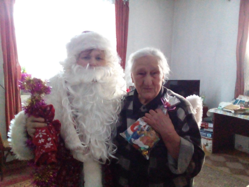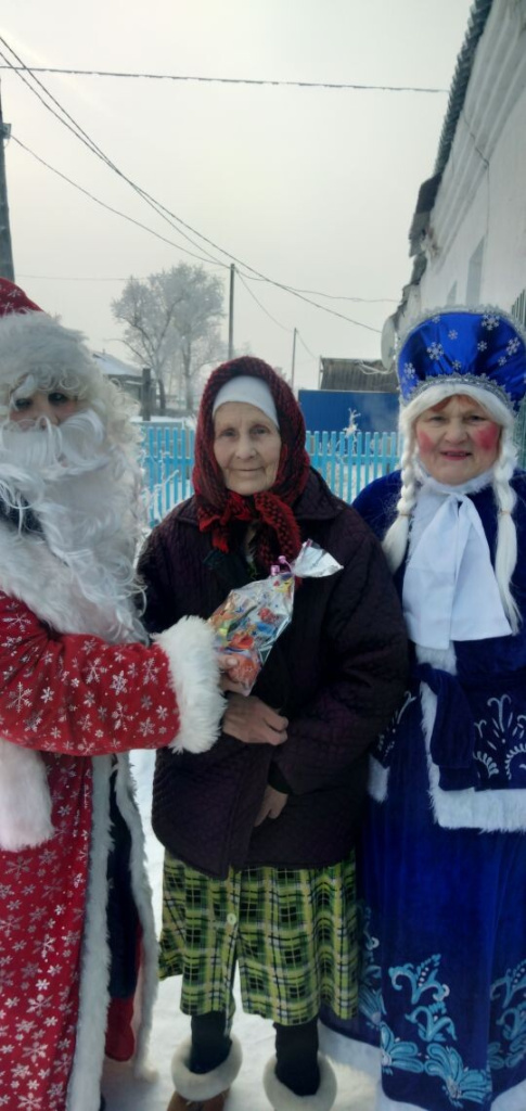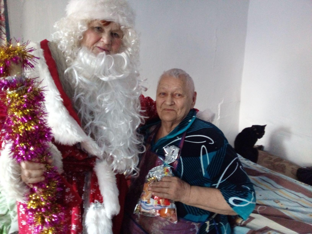 В канун Нового года члены Совета ветеранов с. Первомайского Мишкинского района Удальцова Т.Н. Мороз Л.В- Снегурочка, Салмина Р.В.-Дед Мороз, посетили детей войны. Поздравили с наступающими праздниками и подарили сладкие подарки. Для нас это возможность оказать внимание и сделать предстоящие праздничные дни теплее и радостнее. Мы уважаем и ценим наших детей войны. Поэтому принести им в дом праздничное настроение-это самое малое, что мы можем сделать для них и сказать им огромное спасибо. Надо было видеть радостные, добрые лица и слёзы… Пожелали детям войны крепкого здоровья, благополучия, мира, веры в себя. Всего посетили 27 человек.