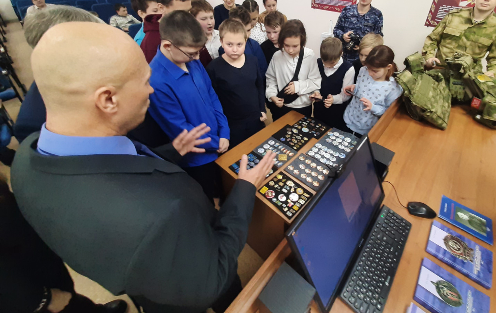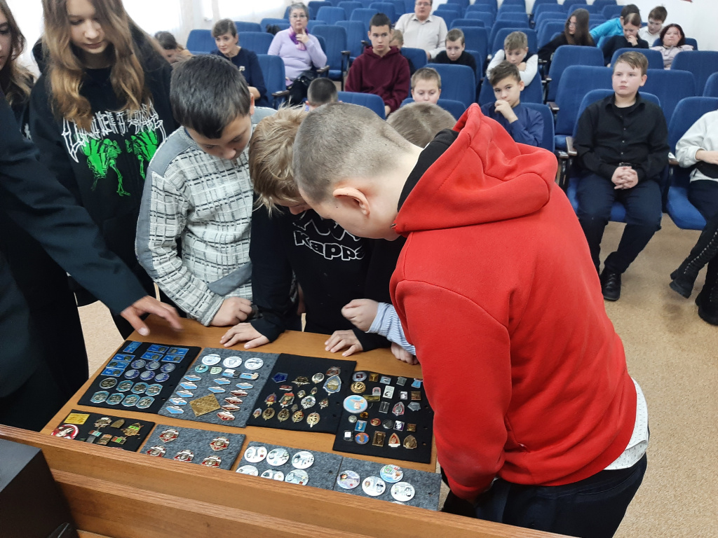 Также школьники ознакомились с выставкой значков из личной коллекции ветерана войск правопорядка Евгения Бастрикова, открывшейся в тот день в стенах теруправления. Выставка будет открыта в течение полугода.