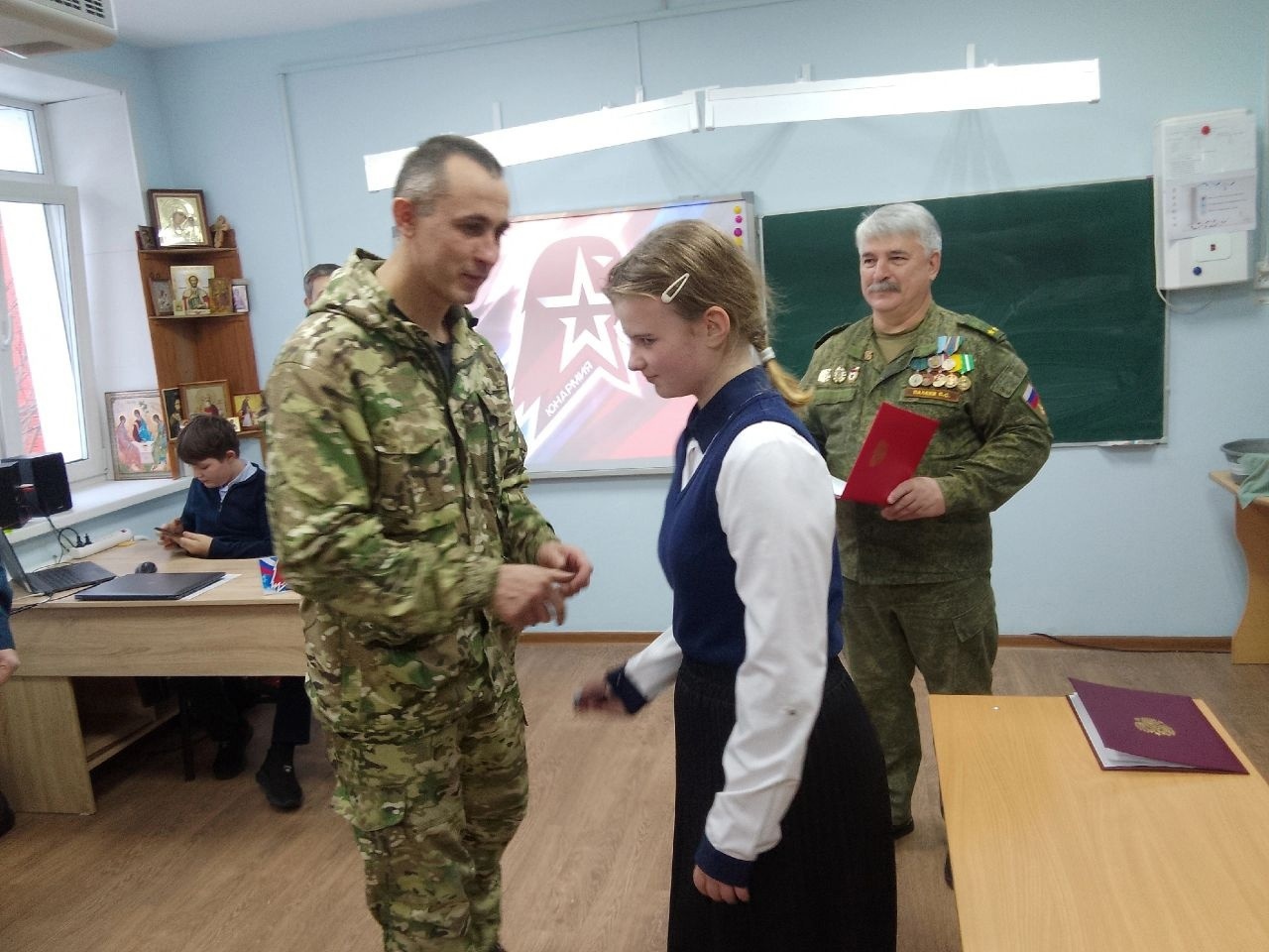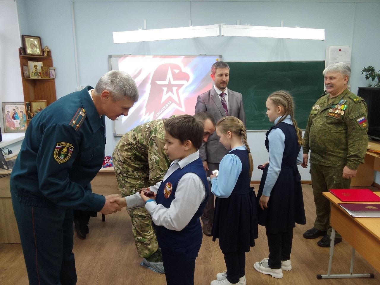 Ряды казачьего юнармейского отряда "Зауральские соколы" гимназии им. Александра Невского пополнились новыми участниками. В торжественной обстановке наши воспитанники приняли клятву юнармейца и получили из рук директора гимназии Чурбанова М.Г., а также почетных гостей: начальника городского штаба Алименко А.В. и подполковника Пашкова В.Н. знаки юнармейца. В добрый путь юные патриоты, желаем вам успехов в учебе и ратных делах!!! С.С.Палеев