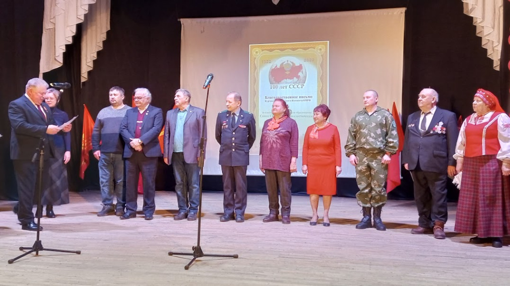 Почётным гостям от общественных организаций, секретарям районных парткомов, знаменитым людям города и области были вручены Почётные грамоты и юбилейные медали ЦК КПРФ к "100-летию образования СССР".