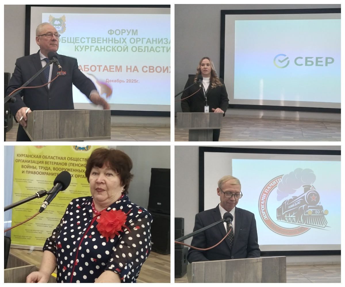 На Форуме Курганский областной Совет ветеранов войны, труда, Вооружённых Сил и правоохранительных органов подвёл итоги уходящего года, посвящённого 80-летию Великой Победы и Году защитника Отечества. Участники форума обсудили также планы совместной деятельности на 2026 год. Особое внимание было уделено вопросам сохранения исторической памяти, воспитания патриотизма среди молодежи и поддержки ветеранов боевых действий и членов их семей, наставничества. Кроме того, на мероприятии выступили представители ветеранских организаций из муниципальных округов Курганской области, представив отчёты о проделанной работе. Они поделились своим опытом участия в общественной работе, отметив важность объединения усилий всех общественных организаций для укрепления единства и сплоченности поколений. Также были подведены итоги конкурса на лучшую первичную ветеранскую организацию в год 80-летия Победы в Великой Отечественной войне.