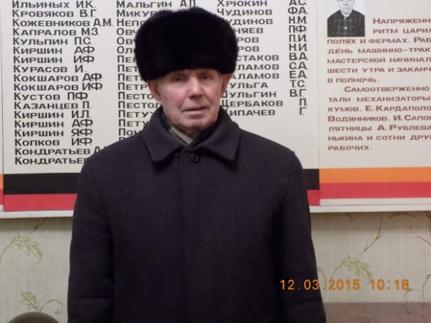Сегодня мне хочется рассказать о человеке, которым по праву гордятся жители села Крутая Горка, Шумихинского района о нашем земляке – Чудинове Василии Ивановиче. Родился Василий Иванович 4 декабря 1931 года в деревне Котлик Галкинского, в ту пору, района Челябинской области. Родители Чудиновы Иван Николаевич и Наталья Васильевна. Тогда в Котлике был колхоз «Имени Павлика Морозова» и мать работала в колхозе свинаркой, а отец работал на почте, почтальоном. В Котлике тогда была начальная школа – 4 класса, где он и учился. С малых лет помогал матери – свинарке, был у неё подпаском, пас свиней. Отца не стало рано: ходил пешком в деревню Б.- Жужгово по осени, было уже холодно, видимо простудился, у него заболело горло. В Большевистской больнице тогда народ принимали из окрестных деревень, его положили в стационар, лечили. Вылечить не смогли, умер в 1938 году, было ему всего-то 35 лет. На руках у матери осталось четверо детей, мал-мала меньше. Вот и приходилось помогать. В Котлике озеро, вот около него и пас свиней, а мать тем временем в свинарнике убирала, домой успевала сбегать, сварить, постирать. В те годы в деревнях рано начинали работать – с малолетства. Когда началась война, а было в ту пору Василию всего 9 лет, пас коров – мать в то время работала дояркой, а за каждой дояркой закрепляли по 16 коров. Женщинам надо было их подоить, накормить, напоить, почистить в загонах, да ещё и пасти. Зимой, как все, а мальчишек много в деревне было, пилили и возили дрова, солому, сено на быках, коровах. Летом в скирды его складывали, возить было не на чем, да и некому, вот ребят и отправляли. Запомнил на всю жизнь, как убирали пшеницу в 41-м, она тогда богатая уродилась. Женщины косили её литовками вручную, когда она подсыхала, ребятня вилами собирала эти валки в кучи, клали на волокуши и везли в одно место, а кто постарше да посильнее, те делали скирды. Колхоз тогда купил старенькую тракторную молотилку, вот женщины зимой, лопатами расчищали дорогу от скирды к скирде, а трактор подтаскивал эту молотилку к одной и начинали обмолачивать. Намолотят, зерно увозят, а молотилку перетягивают к следующей скирде. Вот так и работали всю войну, не только в сорок первом. Помогали взрослым на зерноскладе. Потом, уже, когда стал немного постарше, поставили прицепным на тракторный прицеп. Работать в поле приходилось весь день. Трактора, старенькие колёсники, таскали по две – три сеялки, заправляли их вручную, вёдрами. Засыплют зерно, трактор проедет пять раз и снова пусто, засыпать надо. Это на посевной. В уборочную одно время помощником комбайнёра был. Жатка у них сбоку была, комбайн едет зерно обмолачивает, а разгрузка – пара лошадей в бричку запряжена, там две женщины едут в мешки засыпают. А я в бункере сижу, говорит Василий Иванович, задвижку то открываю, то закрываю. Так весь день в пыли, то сядешь, то встанешь, за день и сидеть и стоять устанешь. Так-то голодно было, а здесь то пшеницы нажарят, наедятся, а то и кашей накормят. В 1945 году посадили на трактор, правда, прав не было, но работать тоже было некому – бригадир брал ответственность на себя. Конечно, детство брало своё. Всем в таком возрасте хочется поиграть, дети военного времени не были исключением. Раньше в колхозе денег не давали, а в войну тем более, многие держали скотину, в огородах много выращивали. Чтобы что-то купить или обменять
