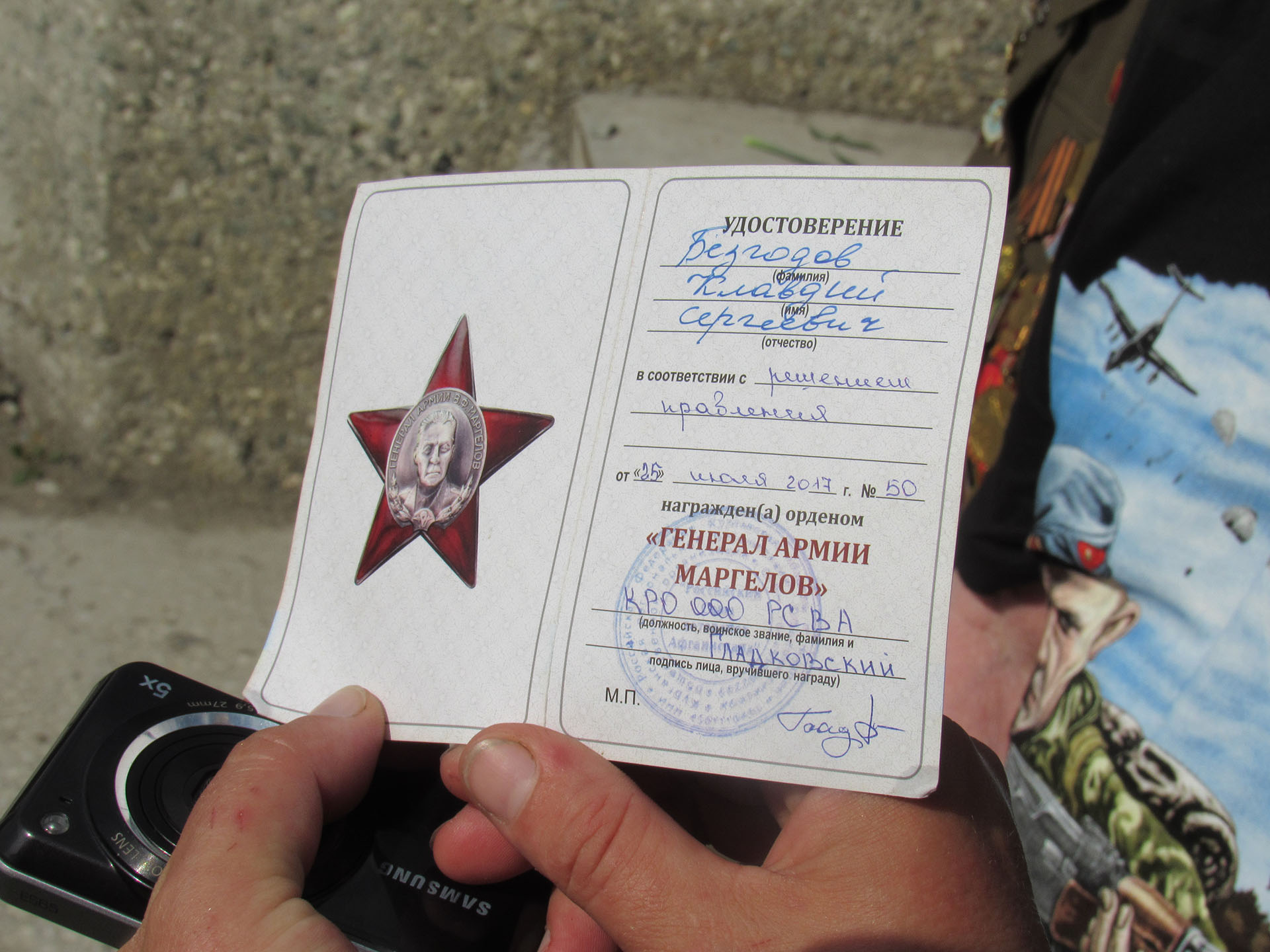 – У меня в руках особая награда особому человеку. Время неумолимо, и с каждым годом мы все дальше от Великой Отечественной войны. К сожалению, сегодня все меньше тех, кто тогда начинал славный боевой путь в воздушно-десантных войсках. Сегодня с нами присутствуют ветераны Великой Отечественной войны. Общественная награда председателю Совета десантников-фронтовиков, ветерану ВДВ, ветерану Великой-Отечественной войны вручается Безгодову Клавдию Сергеевичу! – сказал Константин Гладковский и передал награду.