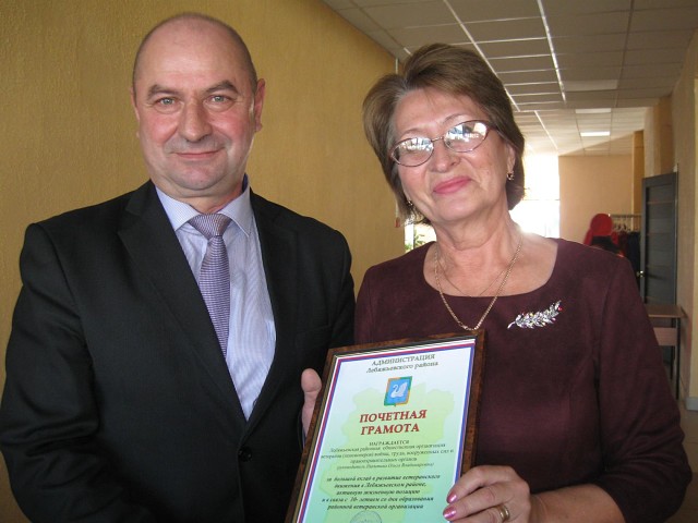 – Никаких слов не хватит, чтобы поблагодарить за ваш труд на благо Лебяжьевского района, за вашу верность малой родине и прекрасные традиции, которые вы заложили, – обратился к собравшимся глава района А. Р. Барч. Особую признательность он выразил Лебяжьевской районной организации ветеранов под рукводством О. В. Никитиной, вручив Почётную грамоту администрации района.