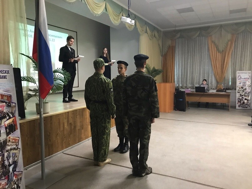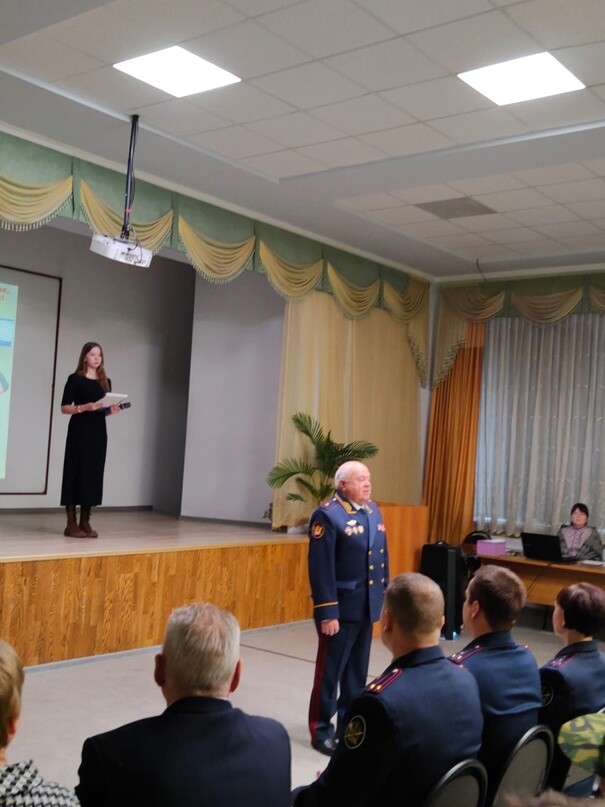 Перед учениками выступил председатель областного Совета ветеранов, полковник запаса Юрий Александрович Черкащенко.