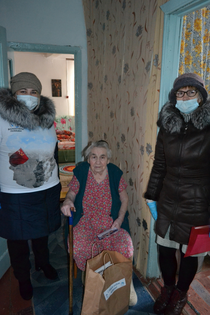 Сотрудники Варгашинского местного отделения ВПП «Единая Россия» и «Волонтеры Победы» побывали в гостях у фронтовиков и вручили им подарочные наборы, в которые входят мандарины, шоколад, отборные консервы и другие продукты – всё российского производства. Кроме съедобных подарков в комплекте праздничная газета и именная открытка.